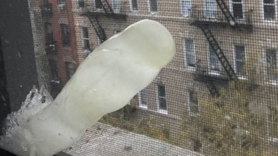 Caroline Haskins returned home to New York after a weekend away to find an explicit ice formation in her window.